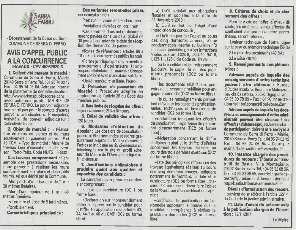 AAPC REALISATION DE MURS EN PIERRES ET DE MURS SOUTENEMENT EN PAREMENT PIERRES - PORTO POLLOCorse-Matin du 18 novembre 2014 |