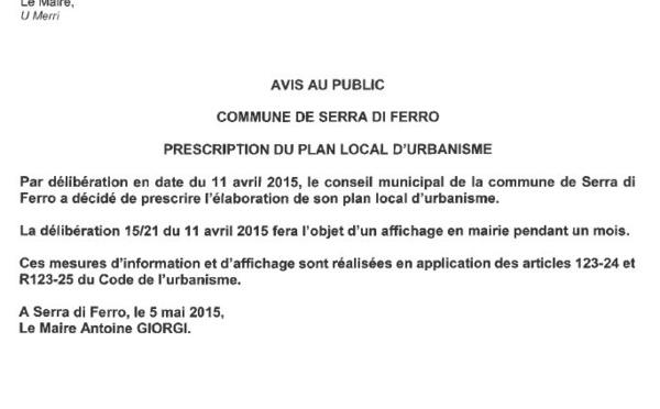 Toutes les informations concernant le Plan Local d'Urbanisme de la commune de Serra di Ferro et Porto Pollo
